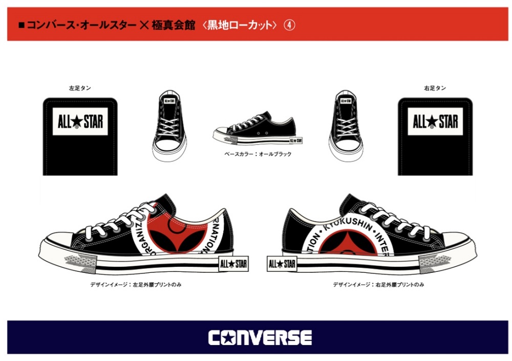 極真会館と「CONVERSE(コンバース)」の初のコラボレーション商品は、極真や武道を愛するすべての人と共に〈新しい極真カルチャーを創り上げる〉というコンセプトのもと、極真会館の会員をはじめ全世界の極真ファンの投票を行い、以下の2点に決定。