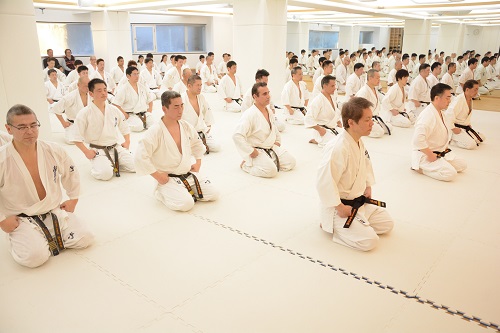 1月11日(水)、東京都渋谷区の本部直轄代官山道場にて、2018年最初の稽古始めとなる総本部鏡開きが早朝午前6時30分より実施された。稽古には松井章奎館長、郷田勇三最高顧問、山田雅稔総本部長をはじめ、全国各地から支部長や指導員、昨年第49回全日本大会優勝者の髙橋佑汰らトップ選手、一般道場生など約100名が参加し、基本稽古を中心に約1時間にわたって大きな気合いを轟かせた。