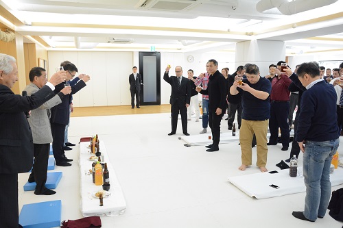 続いて待田京介総本部顧問が乾杯の音頭を取って開宴。山田総本部長をはじめ各支部長、髙橋佑汰ら全日本選手の挨拶の後、2017年の総本部年度賞の授賞式があり、郷田最高顧問による一本締めで盛況の内に中締めとなった。