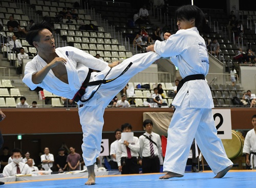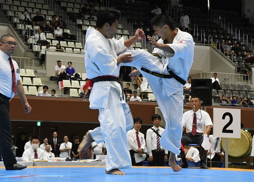 男子-80kg級は、出場選手の中で唯一の入賞経験者である髙木信(東京城西世田谷東支部)が初戦で顔面殴打の反則負け。本命不在の混戦が予想されたが、岡山県大会優勝者の髙田悠一郎(東京城西支部)が決勝で全関西大会優勝者の長澤龍馬(北大阪支部)に判定勝ちで優勝。長澤も初の決勝進出で健闘が光った。