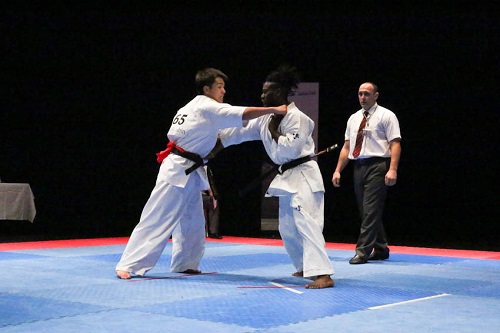 1月28日(日)、アメリカ・ロスアンゼルスにおいて第14回USウェイト制空手道選手権大会が開催された。大会は国際委員の五来克仁師範とロスアンゼルス支部のタク・ナカサカ支部長の主催で行われ、アメリカを中心に、カナダ、日本、ブルガリア、ルーマニア、レユニオン、コロンビアを含めた7カ国から約100名が参加し、5歳の幼年から62歳の壮年まで、様々なカテゴリーに選手が出場して型競技と組手競技で優勝が争われた。日本からは昨年第49回全日本大会で技能賞を獲得した中島千博(東京城北支部)が軽重量級に出場し、決勝で地元ロス支部のソウタ・ナカノを破って初優勝。中島は昨年第34回全日本ウェイト制大会に続く軽重量級での日米W優勝となった。なお、アメリカでは6月23日(土)にニューヨークで「2018オールアメリカンオープン国際空手道選手権大会」が開催される。