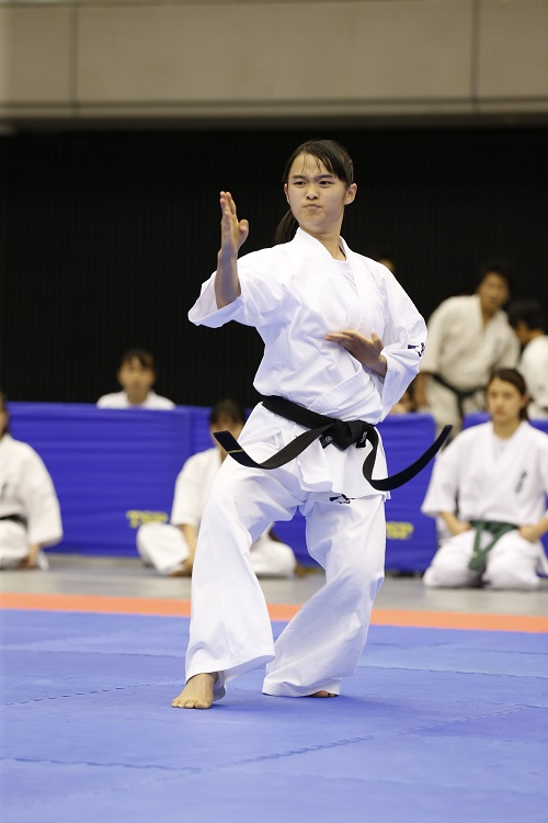大会は午前9時30分に開会式、4月の国際親善大会12歳~14歳男子の部準優勝者で地元・大阪西支部の田中志侑が選手宣誓を務めた。9時45分から型競技の予選・決勝と進み、接戦が展開された12歳~14歳男子上級では予選2位の野﨑篤彦(総本部)が予選1位の田中志侑を決勝で僅差で破り逆転優勝。また15歳~34歳女子上級では国際親善大会3位の古見葵(神奈川相模原支部)が2位に1.5点差を付けて優勝した。