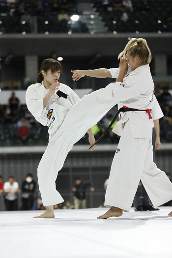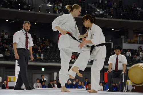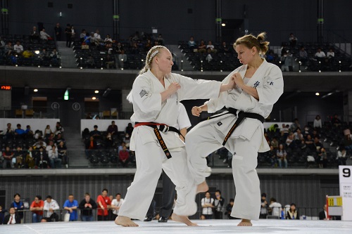 世界女子ウェイト制大会は、軽量級では昨年優勝者の佐藤七海(東京城西国分寺支部)が準決勝でエカテリーナ・コズロワ(ロシア)に上段前蹴りを決められて敗退。決勝でもコズロワが対戦相手の八幡華菜(千葉下総支部)から上段膝蹴りで一本勝ちして初優勝。