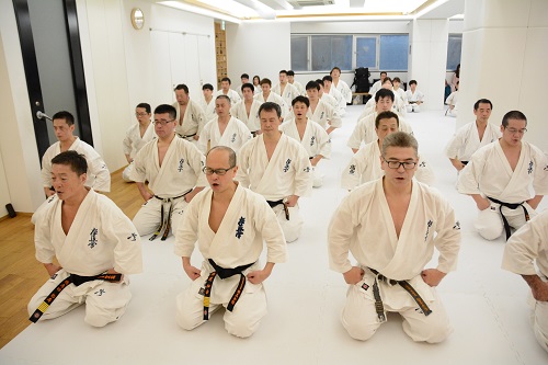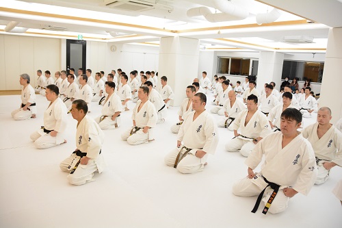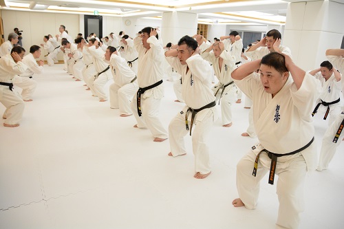 1月11日(土)、東京都渋谷区の総本部代官山道場にて、総本部の2020年最初の稽古始めとなる総本部鏡開きが早朝午前6時30分より実施された。稽古には松井章奎館長、郷田勇三最高顧問、山田雅稔総本部長をはじめ、全国から支部長や指導員、昨年世界大会に出場した髙橋佑汰、永吉美優ら日本代表選手、一般道場生など約120名が参加し、基本稽古と補強運動を中心に約1時間にわたって大きな気合いを轟かせた。