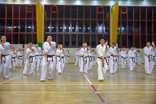 3日間の合宿には地元ポーランドをはじめ、ウクライナ、ドイツ、フィンランド、オランダ、ベラルーシ、日本から407名が参加し、少年・一般・壮年の3つのグループに分かれ、組手の押し技や捌き技から足掛けで相手を転倒させる技術やそれらの技に対する防御方法の技術や、昨年から新しく見直された型の技術を細部にわたって学んだ。現役世界チャンピオンの上田と2011年第10回世界大会4位の実績を持つ赤石師範代から直接指導を受けるという貴重な機会に恵まれ、参加者の誰もが充実した時間を過ごした。