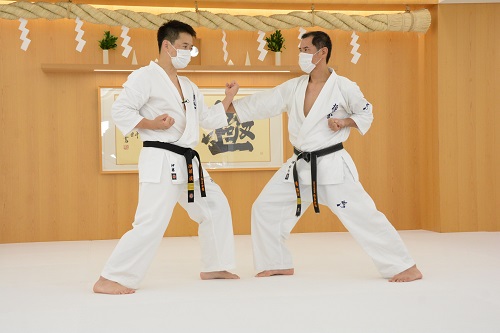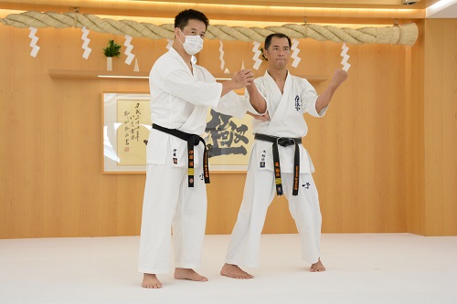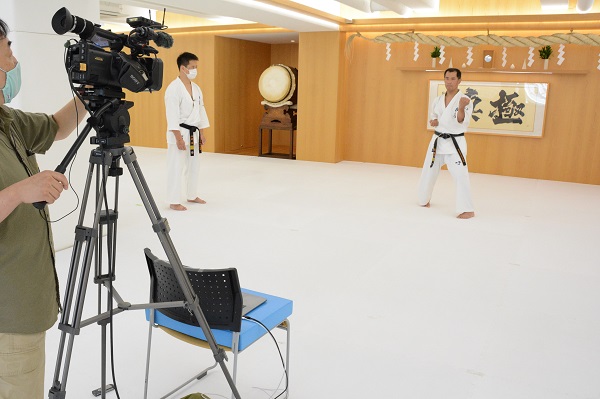 8月30日(日)、全国支部長を対象にしたオンラインによる初めての技術講習会が実施された。この日は、総本部代官山道場に松井章奎館長をはじめ技術委員会のメンバーが集まり、伊藤慎委員長の指導により新たに整備された型・征遠鎮、三戦、撃砕その1、撃砕その2の講習を行い、細かい技の用途方法や分解など要所で松井館長の解説があった。
