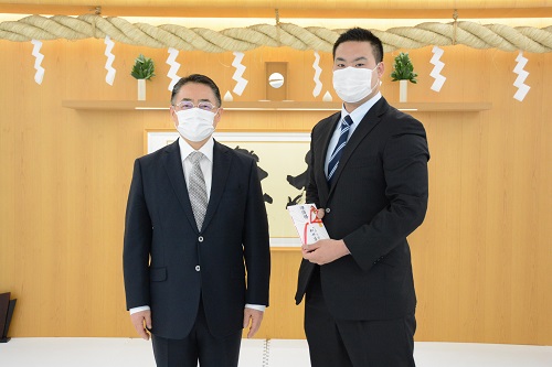 12月16日(水)総本部代官山道場にて、11月29日(日)に行われた第52回全日本空手道選手権大会の優勝者であるコンスタンティン・コバレンコ(総本部道場)、準優勝・西村界人(東京城北支部)、3位・清水祐貴(東京城北支部)、及び2020全日本女子空手道選手権大会優勝者・佐藤七海(東京城西国分寺支部)の上位入賞者に松井章奎館長より武道奨励金が授与された。