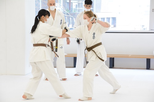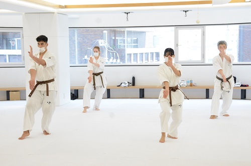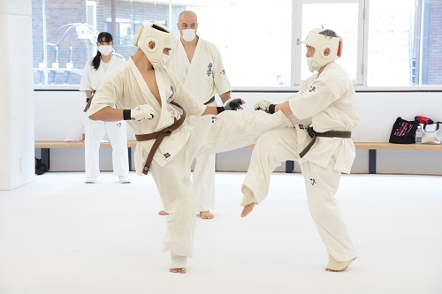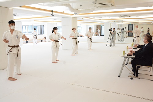 今回は1月の審査会を受けられなかった4名の道場生を対象に行われ、審査員として松井章奎館長、郷田勇三最高顧問、福田勇師範、杉村多一郎師範が出席した。また、今回も極真会館の感染防止策のガイドラインに沿った形で2週間前からの体調チェックシートへの記入、当日の入室時の検温、手指の消毒・除菌、室内の換気、受審者のマスク着用等に十分に配慮し、午前10時から審査がスタートした。