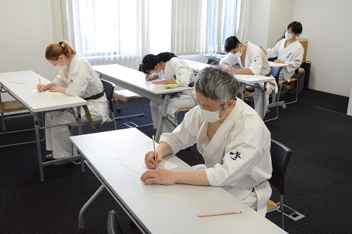 最後に松井館長から「審査で明らかになった各自の問題点や課題点をよく見つめ直し、今後はそれが少しでも改善できるように稽古を続けていくことが大事です。そして、強さや上手さなど皆さんが求めるものを得られるように頑張ってください」と締め括られ、筆記審査を行ってこの日の審査会が終了した。