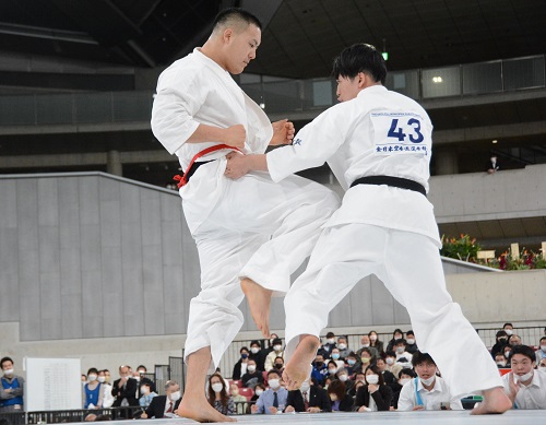 Dブロックは、第53回7位の石﨑恋之介(東京城西支部)と第52回8位の小林健人(東京城北支部)の試合となり、石﨑がパワーで優位に立ち本戦4-0の判定勝ち。3回戦で欧州無差別優勝者のナヴァロ・アレハンドロ(スペイン)を退けた第53回優勝者で今大会2連覇を狙う西村界人(東京城北支部)は第52回7位の奥寺優輝(東京城西支部)を寄せ付けず、本戦5-0の判定勝ちとなった。