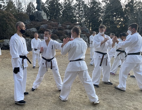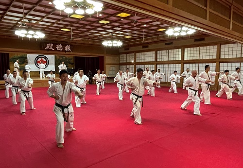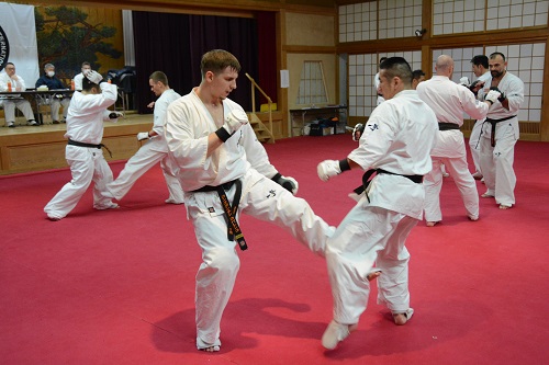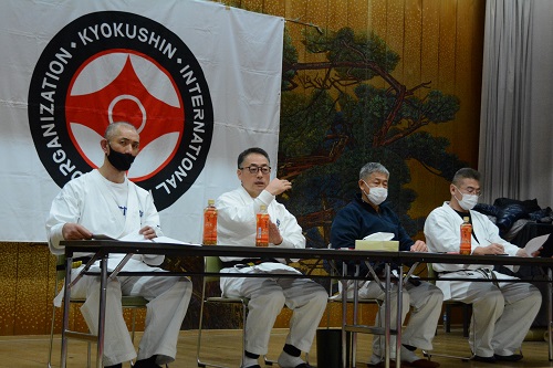 今年も宿泊者の人数制限により参加者は参段以上を受ける昇段審査の受審者25名と総本部の師範、指導員、スタッフのみで行われ、今回は国内はもとより政府の外国人入国規制緩和により各国の支部長、道場責任者、また道場生の参加があった。