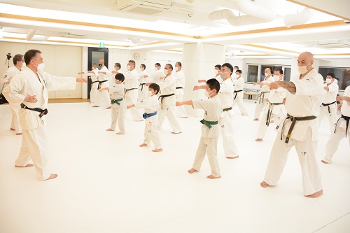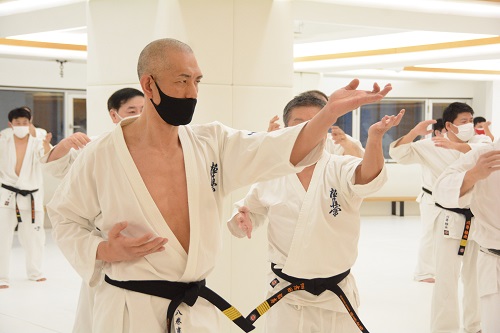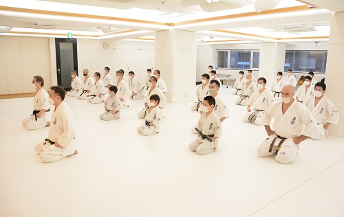 1月11日(水)、東京都渋谷区の総本部代官山道場にて、2023年最初の稽古始めとなる総本部鏡開き稽古が早朝午前6時30分より行われた。今年も感染防止対策のため人数を制限し、松井章奎館長、山田雅稔総本部長、総本部の福田勇師範、八巻建志師範、杉村多一郎師範と各支部長など約30名の参加となった。
