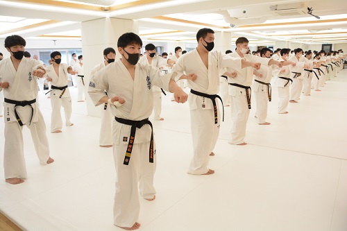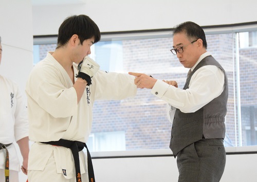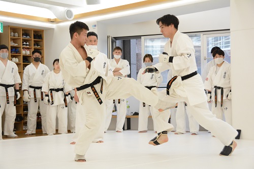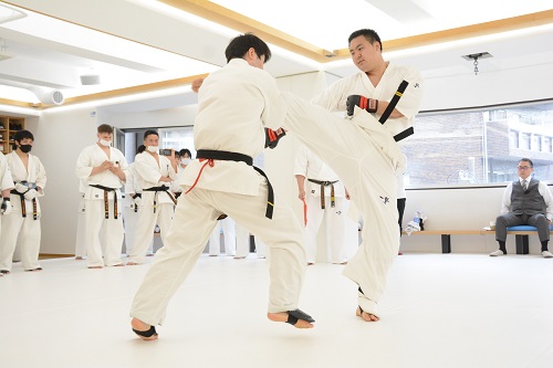 17時に稽古が終了し、最後に館長から選手たちに「今日、私がアドバイスしたことや組手の感想は皆さんなりに受け止め咀嚼して今後に活かしていただきたいと思います。本来の稽古は、ただ決められたルーティンをこなして汗を流すのではなく、そこから何を学び、本質をかみ砕いて自分のものにして、その後の組手に活かすかということ。それをよく考えて取り組んでください」と話が合った。
