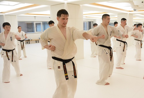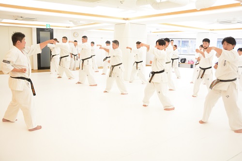 そして再び鎌田コーチが「先(せん)を取る」ことの大切さや試合に臨む心構えを選手たちに講義し、続いてアルトゥール師範の指導で強度の高い自由組手、最後に自分がダメージを受けたり、怪我をした等の様々な状況をイメージしたシチュエーション組手を行いこの日の稽古を終了した。