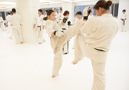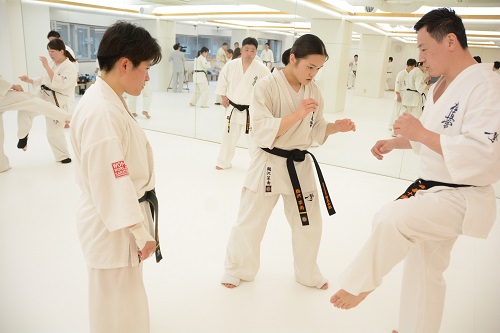 次に鈴木雄三コーチによるフィジカルトレーニング、徳田忠邦コーチの指導でセミコンタクトルールをベースにした防御技術の稽古、森善十朗コーチは近い間合いでの下段廻し蹴りに対する効果的な受け方をレクチャーした。