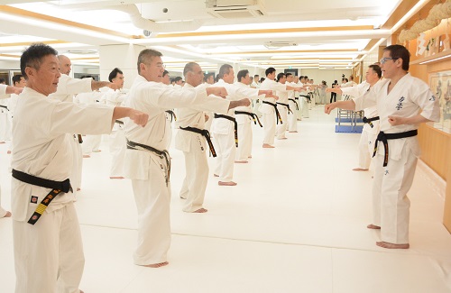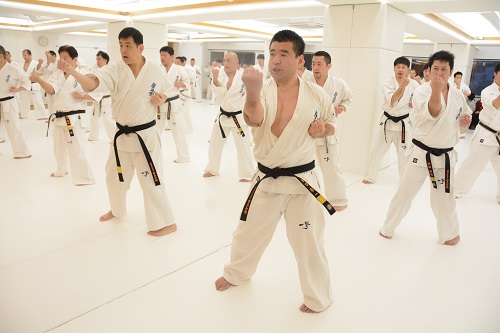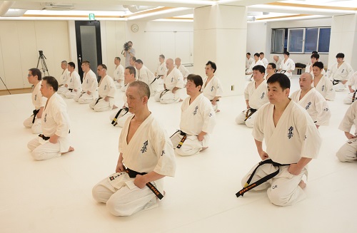 1月11日(木)、総本部代官山道場にて2024年最初の稽古始めとなる総本部鏡開き稽古が早朝午前6時30分より行われた。今年は4年ぶりに人数制限を解除して実施され、松井章奎館長、山田雅稔総本部長、総本部の福田勇師範、八巻建志師範、杉村多一郎師範をはじめ、関東地区を中心とした各支部長、道場責任者、指導員、現役選手、総本部道場の年間努力賞受賞者など約70名が参加した。