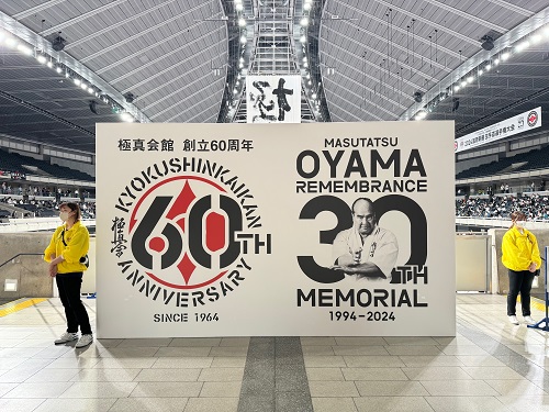 また、今年は大山倍達総裁(1923-1994)没後30年と極真会館創立60周年となることから、会場入り口には各ロゴの大型パネルが展示され、選手やセコンドなど来場者が記念撮影に興じていた。