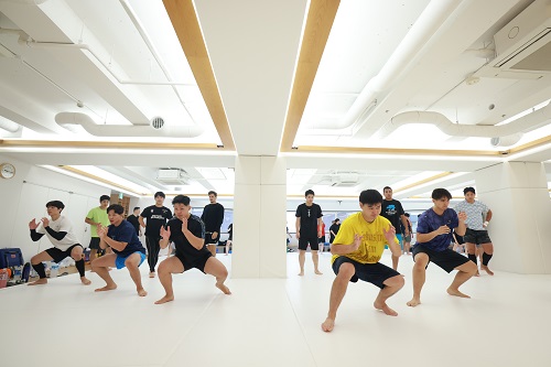 最終日も2日目と同じく朝9時から鎌田翔平コーチと竹岡拓哉コーチの指導で四股、蹲踞の姿勢ですり足、押し相撲といった足腰を鍛えるフィジカルトレーニングとミット稽古。午後は赤石監督の号令で基本稽古、鈴木雄三コーチの指導で組手稽古、その後にミット稽古と最後は追い込みのフィジカルトレーニングで4時間の稽古を締め、3日間の合宿の全日程を終了した。