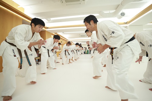 初日の稽古の前に日本代表・赤石誠監督から「一番大きな目標は3年後(2027年)の第14回世界大会で優勝することですが、その前段階として今年秋の第56回全日本大会と来年春に行われる第8回世界ウェイト制大会で必ず勝たなければいけません。そのために今回の強化合宿では接近戦の強化と打撃力の向上をテーマに稽古を行っていきます」との話があった。