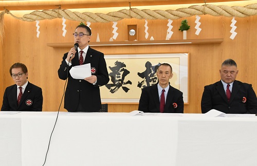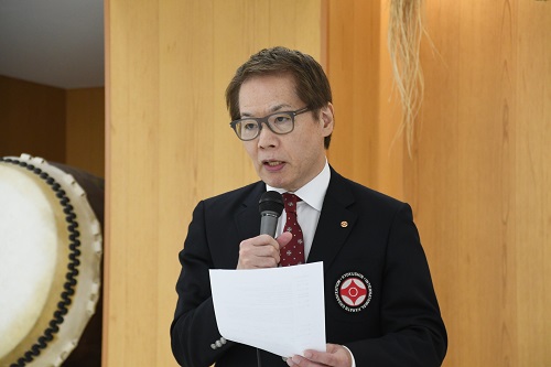 続いて松井館長から「(全日本ウェイト制大会は)通常であれば毎年6月に大阪府立体育会館(エディオンアリーナ大阪)で行われてきましたが、今年は改修工事で使用できないという事情があり、例年老若男女多くの選手が参加する『極真祭』や全日本型、セミコンタクトルール全国交流大会などいくつかの大会を同時開催している8月下旬の京都府立体育館(島津アリーナ京都)で体重別の全日本選手権大会を開催するということになりました。今大会は極真会館の第40回全日本ウェイト制大会を兼ねる形ですが、2年ぶりに真正会との共同主催で、今まで二度行ってきた2022年・2023年と同様に『2025オープントーナメント全日本体重別空手道選手権大会』と銘打って開催されます」と話があり、「この度、全日本真正空手道連盟 真正会が国際空手道連盟に賛助会員として加盟する運びとなりましたことも併せて正式に発表させていただきます。2年前の2023年7月に真正会の中本直樹代表が急逝され、共同主催についても保留となっていましたが、この間に真正会がここに出席されています鈴木代表代行と内田本部長を中心に組織の体制が整ったということもあり、この機に従来の共同主催の形に戻し、国際空手道連盟という連盟を通してより密接なお付き合いをしていく中で、空手道の社会的地位の向上、武道団体として日本文化の継承と発信、あるいは社会体育団体として活動の幅や裾野の拡大といった志を同じくして共に活動に邁進していきましょうということで、今般の国際空手道連盟への賛助会員としての加盟になりました」と説明があった。
