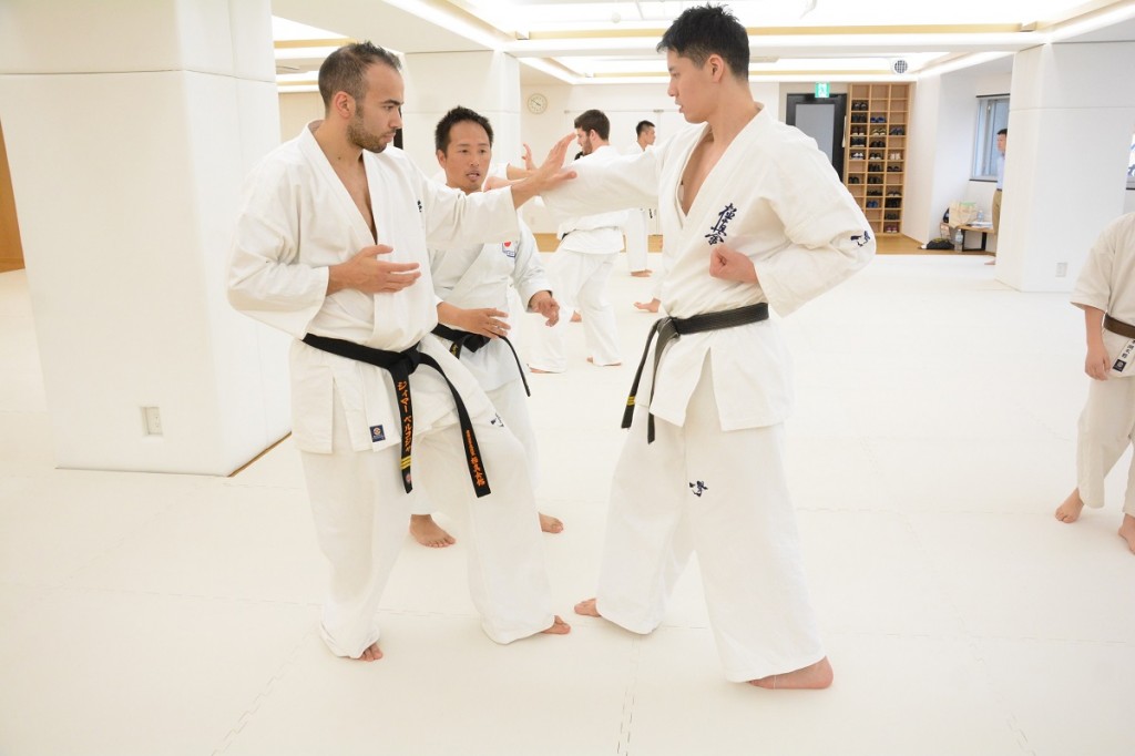 そして今回は、前回行った糸東流の第一指定形のバッサイダイとセイエンチンの全体を通した稽古ではなく、バッサイダイの手順と形の中の細かい動作の分解の説明があり、二人組で分解の動きを実践して形の理解を深めた。