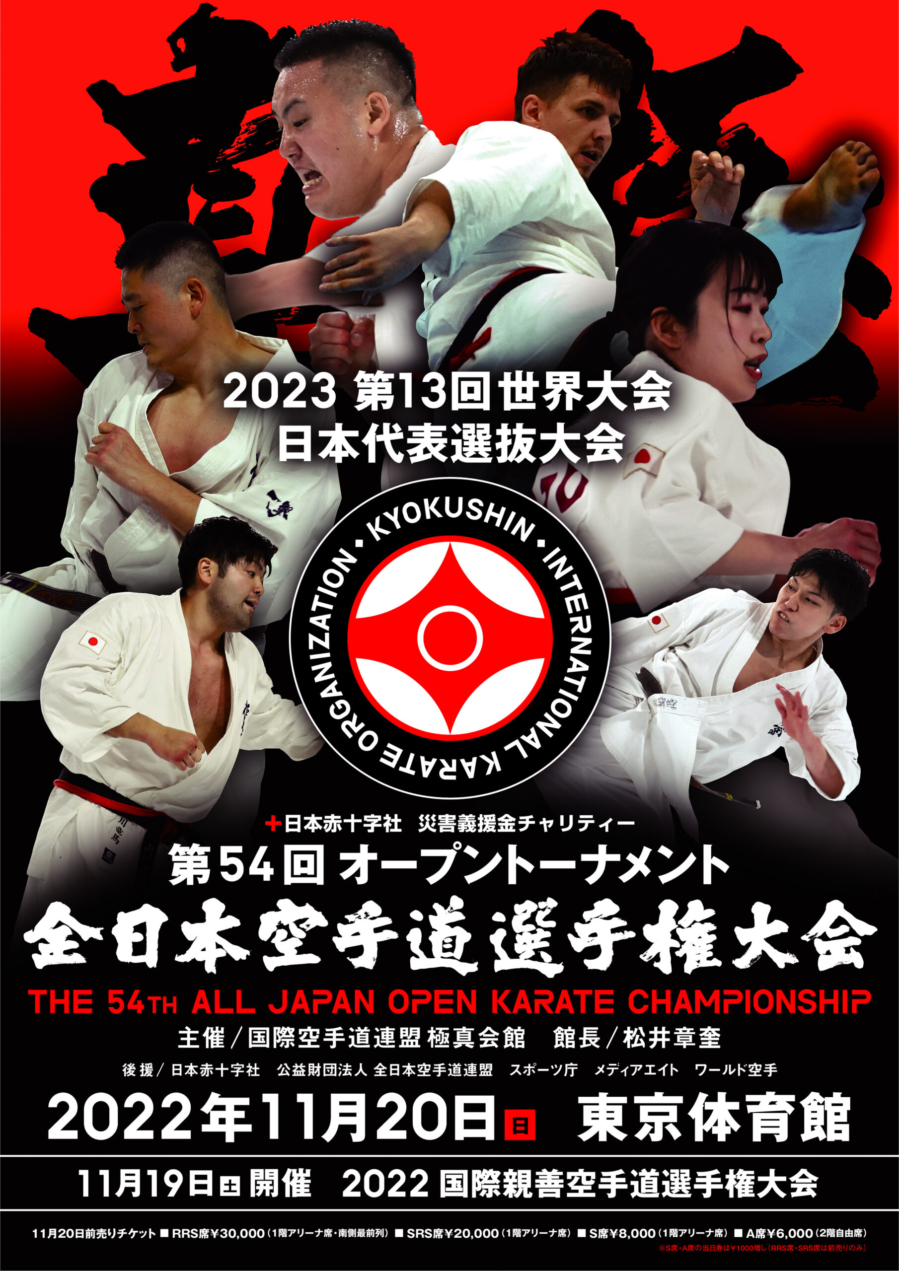 11月20日(日)、東京体育館において『第54回オープントーナメント全日本空手道選手権大会』が開催されます。今大会は、来年2023年秋に開催される『第13回オープントーナメント全世界空手道選手権大会』の日本代表選手選抜大会になります。