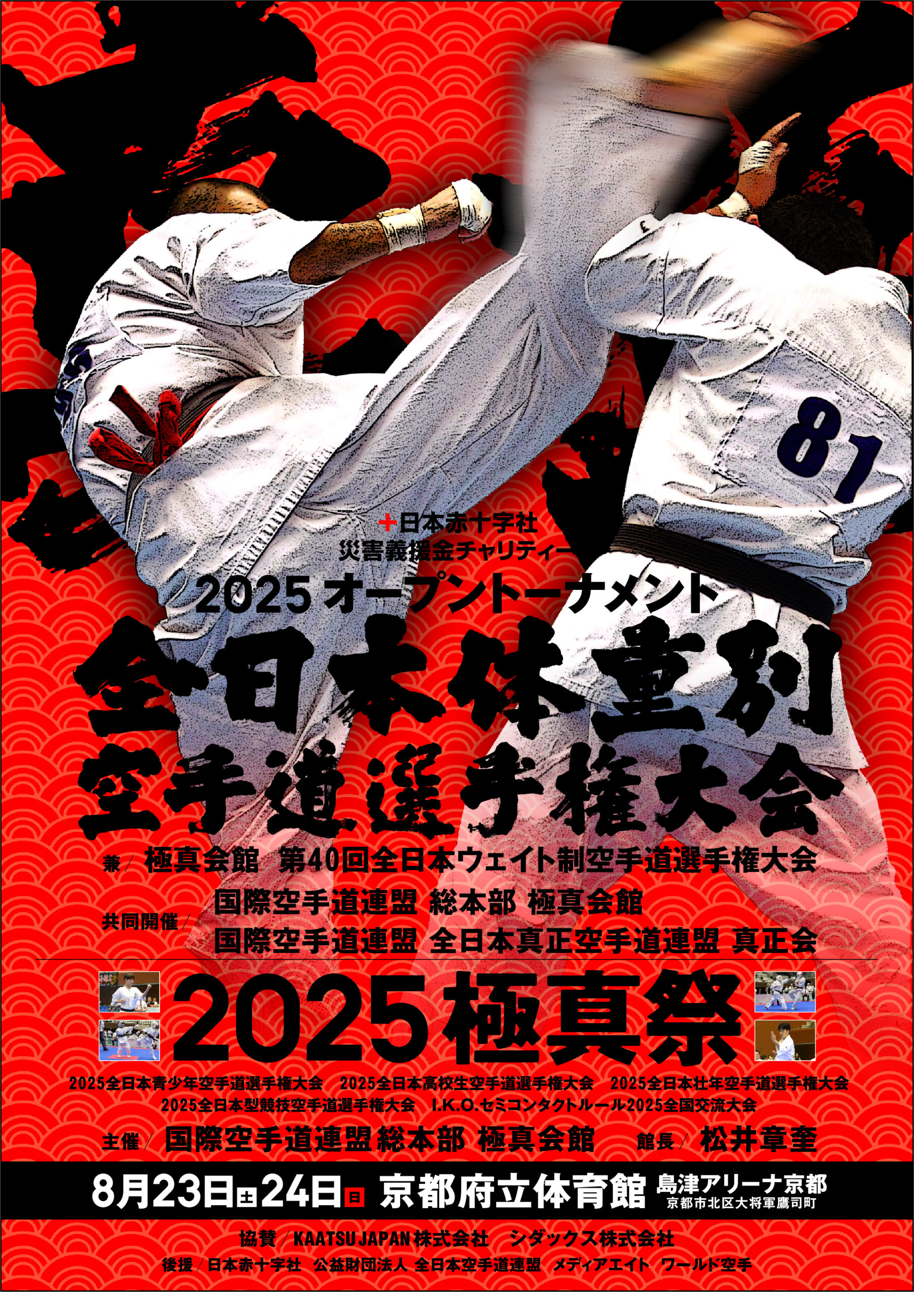 8月23日(土)24日(日)京都府立体育館(島津アリーナ京都)にて「2025オープントーナメント全日本体重別空手道選手権大会(兼/極真会館 第40回全日本ウェイト制空手道選手権大会)」「2025極真祭」が開催されます。