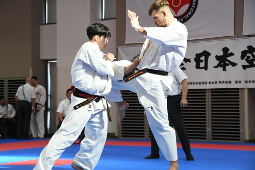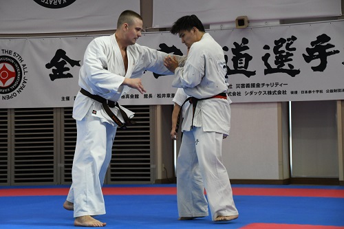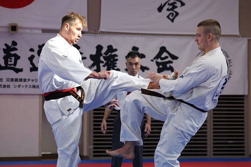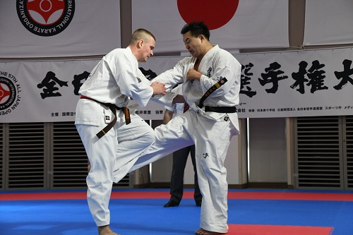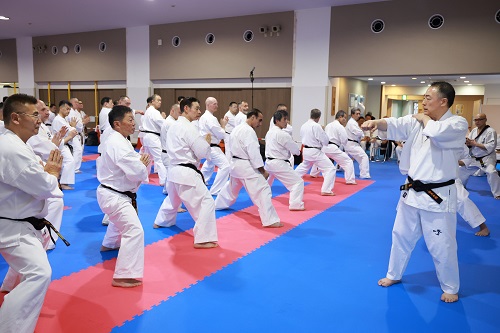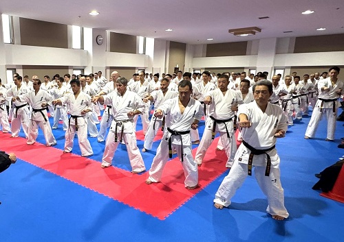 また、今大会初日の試合終了後に全国の支部長と大会で来日している海外の支部長約100名が参加して支部長稽古会が実施され、松井館長が道場での稽古に則って立ち方、準備運動から基本稽古まで丁寧に指導を行い、稽古体系やそれに伴う意識と情報の共有がなされた。