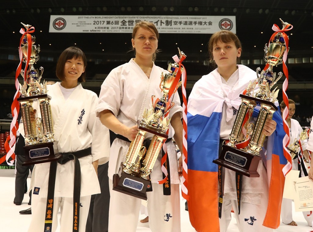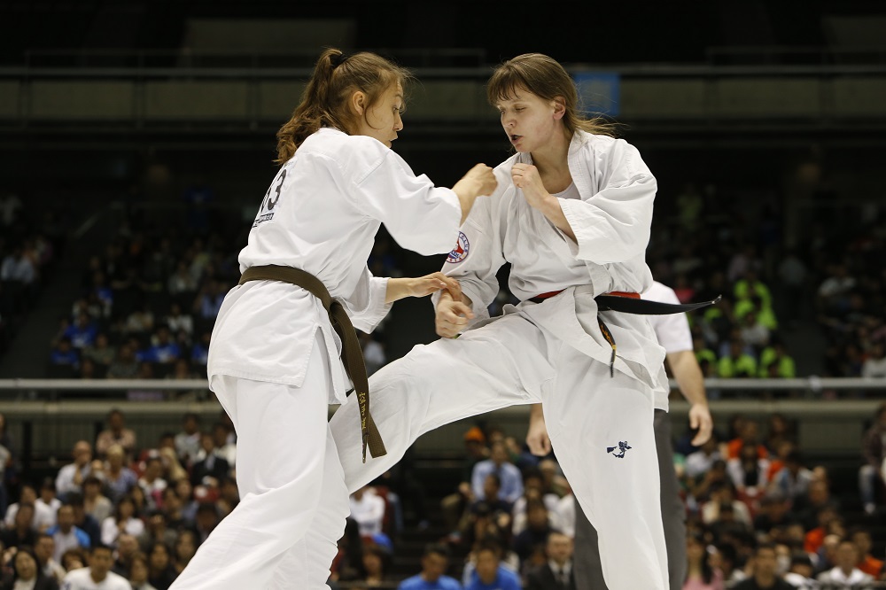 2017世界女子ウェイト制空手道選手権大会は、初日に予選が行われ、ベスト4に勝ち残った選手が2日目に準決勝から決勝戦までを戦った。軽量級では昨年優勝した本村愛花と安藤真奈美(ともに東京城東支部)が共に準決勝で敗れ、決勝戦は島田慧巳(本部直轄浅草道場)と、これまでの中量級から軽量級に階級を下げた田崎佑麻(広島県支部)のベテラン同士の一戦となり、田崎が3-0の判定勝ちで世界ウェイト制大会では初優勝を遂げた。