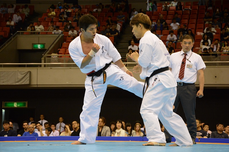 まず軽量級はゼッケン1番のベイ・ノア(東京城北支部)と昨年ベスト8の亘和孝(東京城西支部)の決勝戦となり、亘が本戦終盤に中段突きで技有りを取って優勢勝ちで初優勝。中量級は優勝候補と見られていた原田祐光(本部直轄浅草道場)と多田将太朗(城西世田谷東支部)が2日目の予選で敗退して姿を消し、決勝には昨年同級3位の樋口知春(東京城北支部)と2011年第28回大会同級優勝者で昨年は軽重量級2位の竹岡拓哉(東京城西支部)が勝ち上がり、本戦で樋口の胴廻し回転蹴りをかわした竹岡が転倒した樋口に下段突きを決めて、これが技有りとなり優勢勝ち。竹岡は6年ぶり2度目の優勝となった。