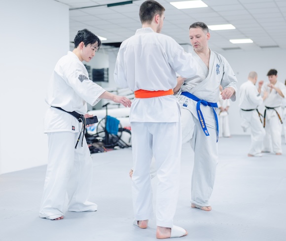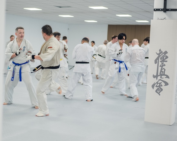 The 4th German Winter Camp was held from February 20th to 22nd in Dusseldorf, organized by German Branch Chief Sensei Peter Kahle. The camp was led by Shihan Katsuhito Gorai, assisted by Senpai Ryoji Ohata, current World Middle Weight Champion. More than 100 IKO members from Belgium, Finland, France, Hungary, Netherlands, Poland, Spain, Sweden, UK and Germany participated. All aspects of Kihon, Ido, Kata, Bunkai, and fighting techniques were well covered, and kumite session completed the camp.